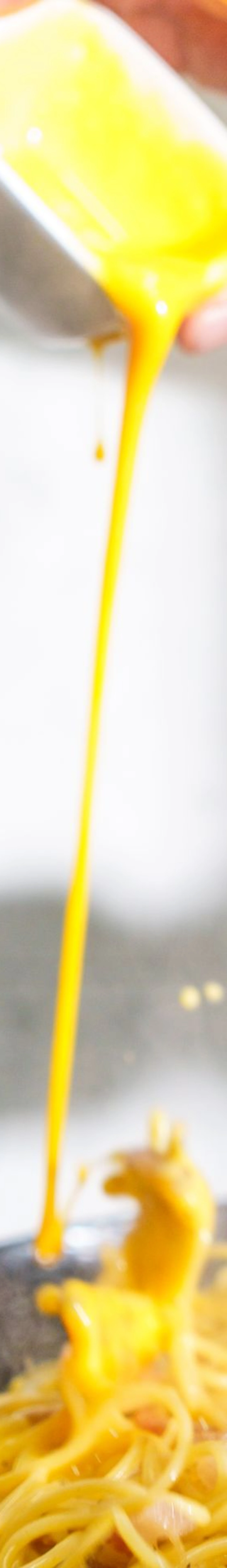 CARBONARA: Guanciale (joue de porc), oignons, œuf, parmesan